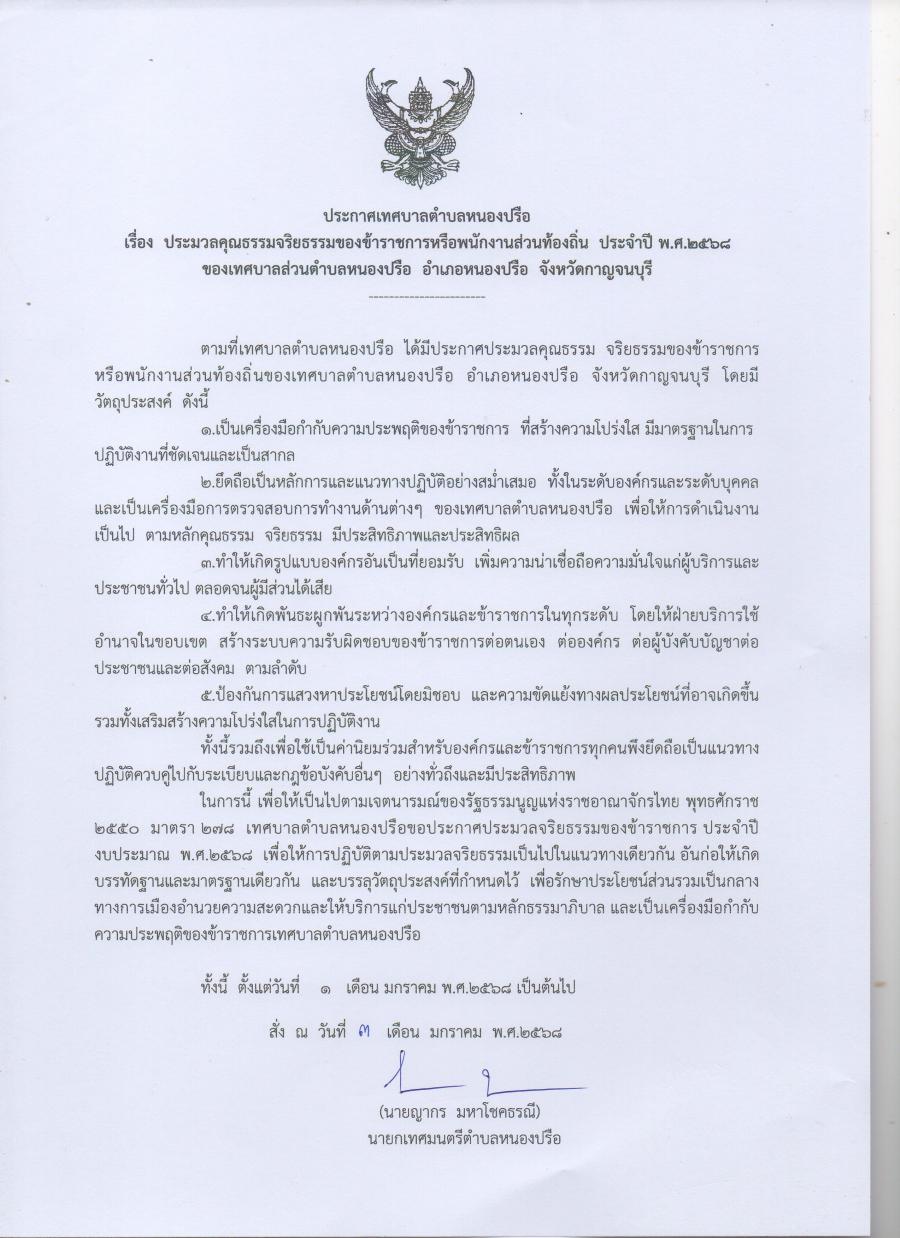 ประมวลคุณธรรมจริยธรรมของข้าราชการหรือพนักงานส่วนท้องถิ่น ประจำปี พ.ศ.2568
