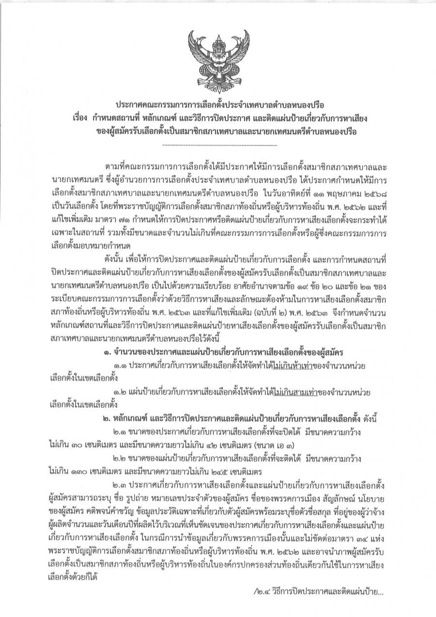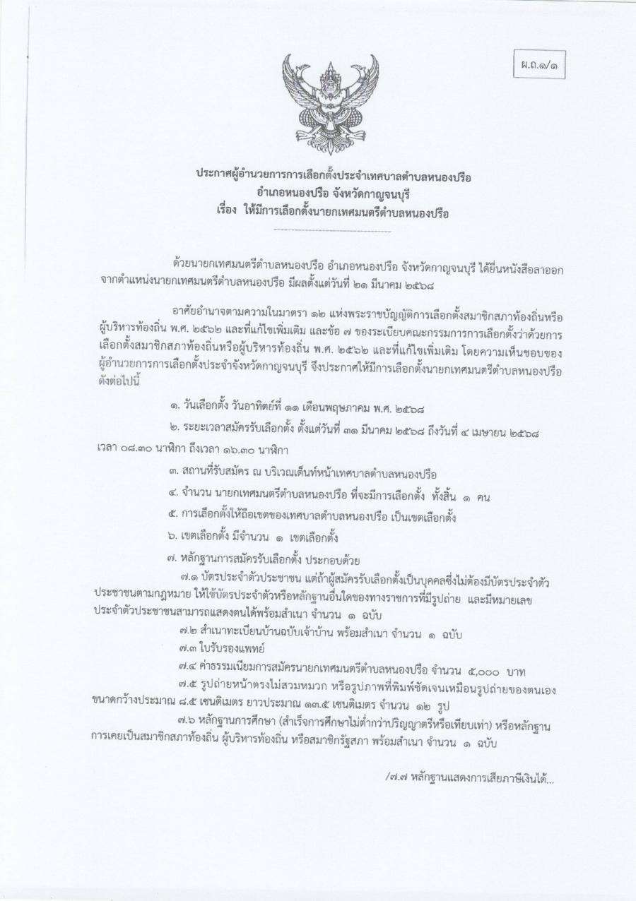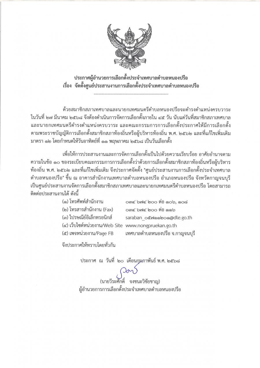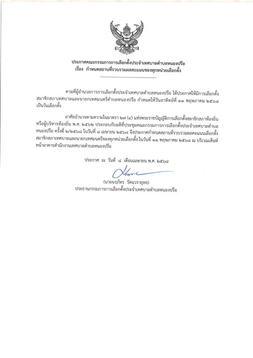 ประกาศให้มีการเลือกตั้งสมาชิกสภาเทศบาลตำบลหนองปรือ ลงวันที่ 28 มีนาคม 2568