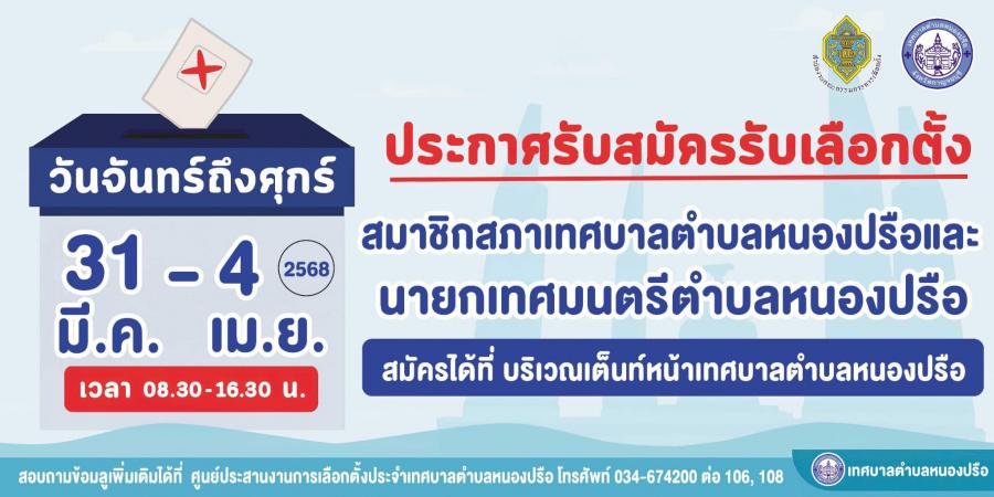 ประกาศรับสมัครรับเลือกตั้งสมาชิกสภาเทศบาลตำบลหนองปรือและนายกเทศมนตรีตำบลหนองปรือ